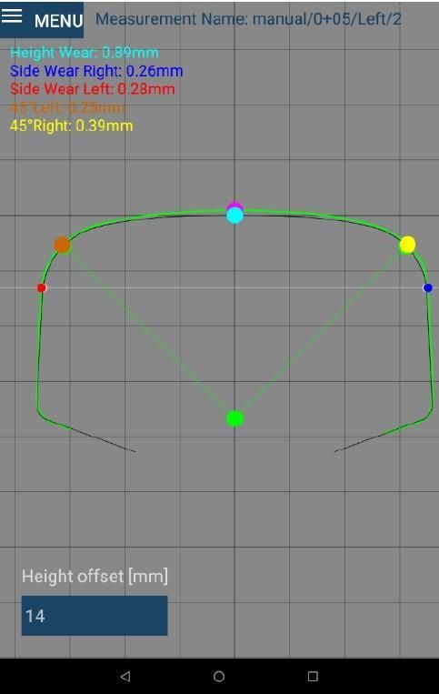 Los datos medidos se transmiten a una Tablet, en la que se realiza directamente la evaluación, comparando con el perfil teórico del carril.