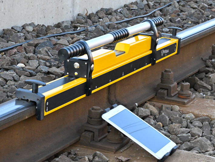 - Regla para la medición de planitud del carril y comprobación de la geometría de la superficie de rodadura y cara activa del carril.